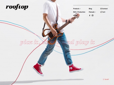 Rooftop Guitar Works white, pattern-i, japanese, red, css, corporate, yellow, branding, blue, javascript 0